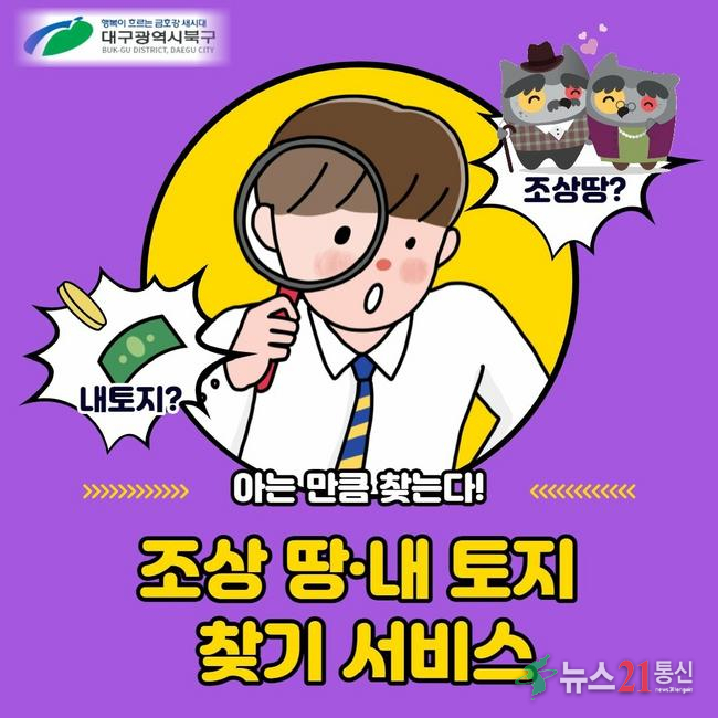 대구광역시는 불의의 사고나 관리 소홀로 잊고 있었던 본인과 조상의 토지를 찾아주는 ‘조상땅 찾기 서비스’를 운영하고 있다. 매년 이용 사례가 늘어나면서 시민들의 관심이 집중되고 있다.
