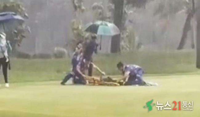 사고 당시 현장은 폭우가 쏟아지고 있었으며, 구조대가 부상자를 들것에 옮겨 담는 영상에서도 캐디가 움직이지 않는 모습이 포착됐다.
