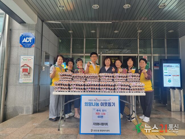 대전 중구 유천2동(동장 구순서)은 25일 자원봉사협의회(회장 유재경)가 홀로 사는 어르신 60가구를 대상으로 ‘계란 나눔 행사’를 진행했다고 밝혔다.