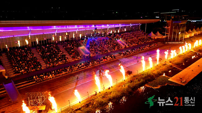 호수 위의 우주 [사진제공.충주시]10월 6일부터 11일까지 매일 밤 8시 탄금호 국제조정경기장에서는 수상 불꽃극 ‘호수 위의 우주’가 펼쳐진다.충주의 설화를 재해석한 이야기와 웅장한 불꽃, 극적인 군무가 어우러져 관람객들에게 잊지 못할 감동을 전할 예정이다.