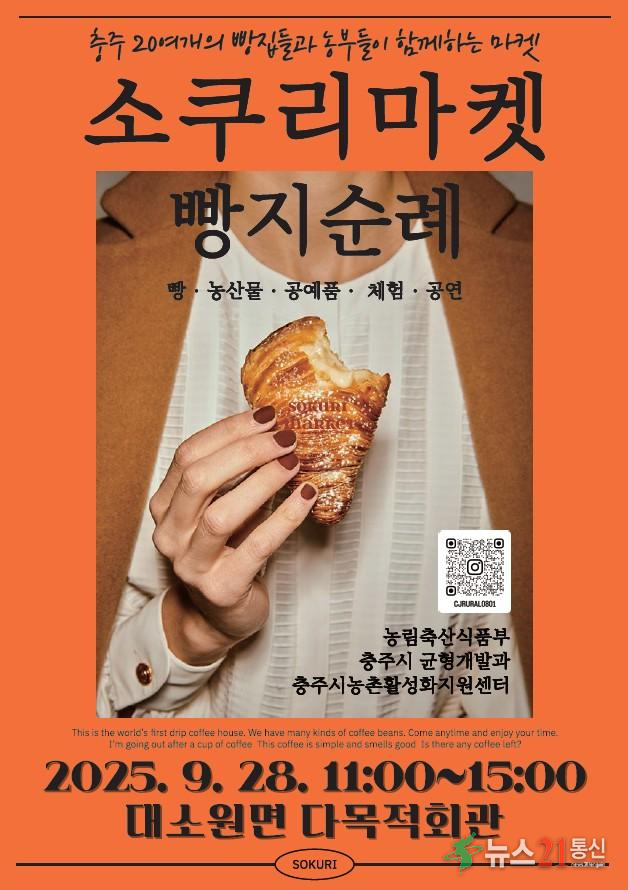 충주시농촌활성화지원센터는 오는 9월 28일 오전 11시부터 오후 3시까지 대소원면 다목적회관 광장에서 두 번째 ‘소쿠리마켓 빵지순례’를 개최한다고 밝혔다.