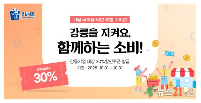 강원더몰은 기획전 기간 동안 ‘강릉기업 특별 브랜드관’을 개설해 지역 대표 상품을 집중 소개한다. 또 해당 상품 구매자에게는 최대 2만 원 한도의 30% 할인 쿠폰 이벤트를 진행해 합리적인 가격으로 착한 소비에 동참할 수 있도록 했다.