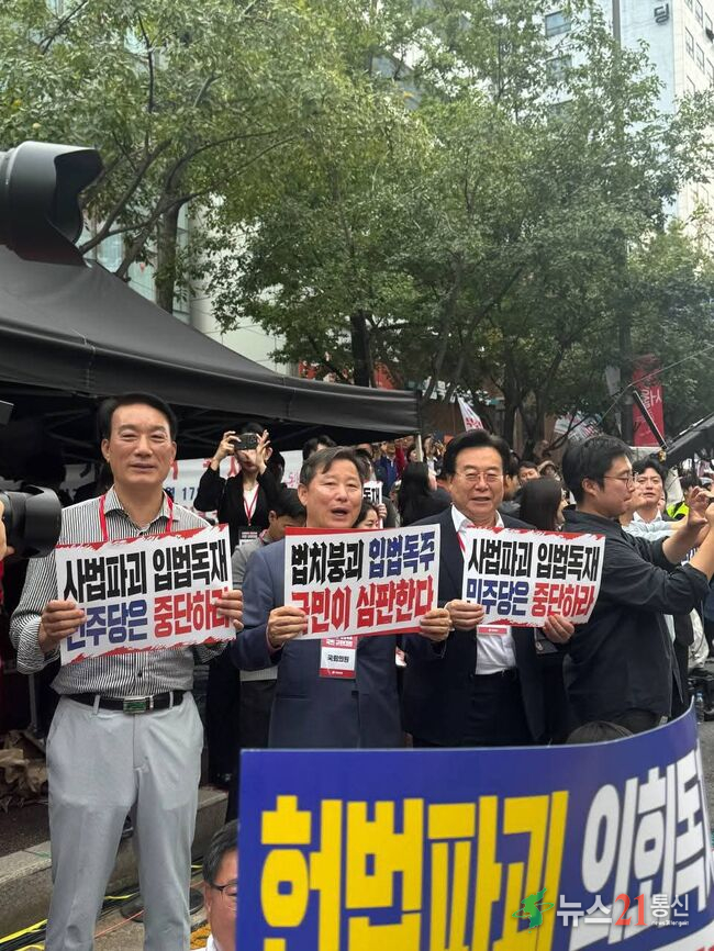 이철규 의원(강원 동해·태백·삼척·정선)도 이날 페이스북 글을 통해 규탄대회에 참석한 사실을 알리며, “당협 당원들과 함께 상경해 이재명 정권의 국정 파탄을 규탄했다”고 밝혔다. 그는 “한미 관세협상 실패를 덮기 위한 반미 선동, 사법 파괴, 불법 파업 조장법, 방송 장악법 같은 잘못된 입법은 더 이상 가서는 안 될 길”이라며 민주당을 정면 비판했다.