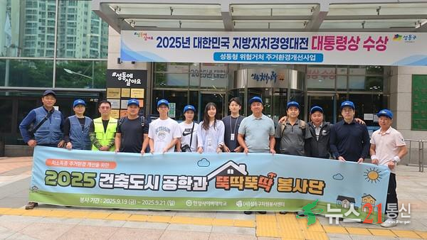 사진: 한양사이버대학교 디지털건축도시공학과 '뚝딱뚝딱 봉사단' 집수리 봉사활동 단체사진 출처: (사)성동구자원봉사센터