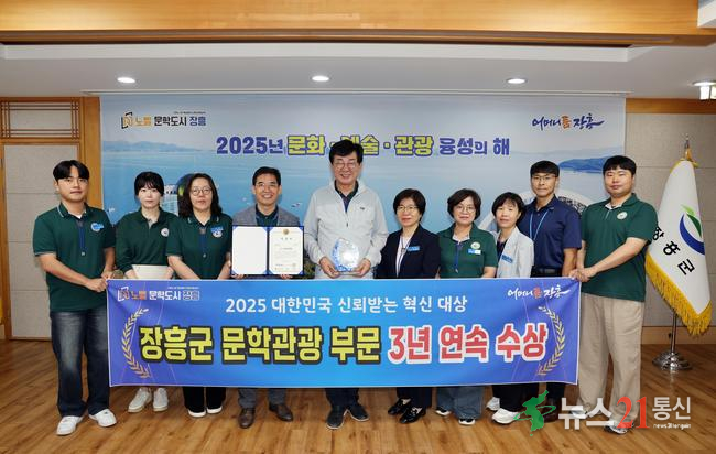 장흥군이 9월 29일 개최한 ‘2025 대한민국 신뢰받는 혁신대상’시상식에서 문학관광 부문 공공혁신 대상을 수상했다고 밝혔다.