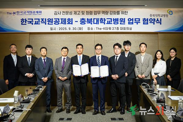 한국교직원공제회(상임감사 이춘호)는 충북대학교병원(상임감사 김정태)과 감사활동 협력과 지원을 위한 감사업무 협약을 체결했다고 30일 밝혔다. 이번 협약은 상호 협력을 통해 감사성과 향상, 청렴윤리·공직기강 확립 등 책임 경영 강화를 위해 마련됐다.