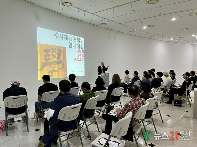 이 관장은 예산 지역 출신 조선 후기 서예가 김정희(추사)의 서체를 중심으로 전통 서예가 현대미술에 끼친 영향에 기반해 국내 미술 흐름을 설명하고 미술관 운영 전략을 소개했다.