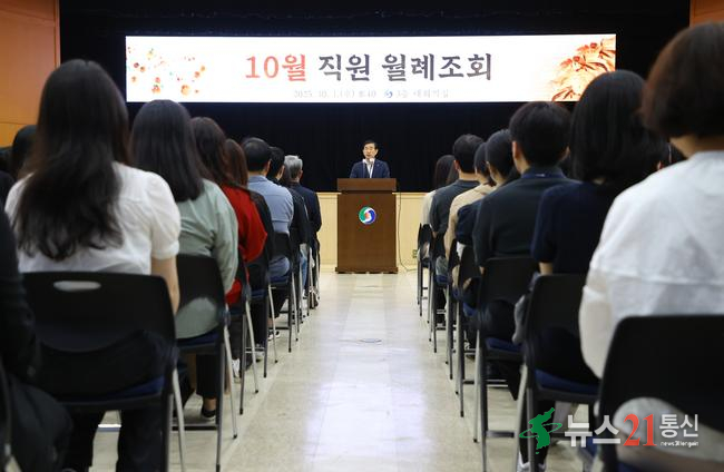 충주시는 1일 시청 대회의실에서 10월 월례조회를 열고 지난달 주요 성과를 공유하며 직원들의 노고를 격려했다.