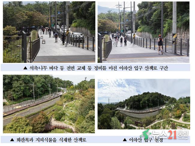 또한 산책로의 경사도를 기존보다 낮추고, 미끄럼 방지 시공으로 누구나 안전하게 이용할 수 있도록 개선했다. 산수유, 매화나무, 수국, 황매화 등 화관목 약 11,000주와 지피식물 약 3,500본을 식재해 사계절의 다채로운 변화를 즐길 수 있는 경관도 조성했다.