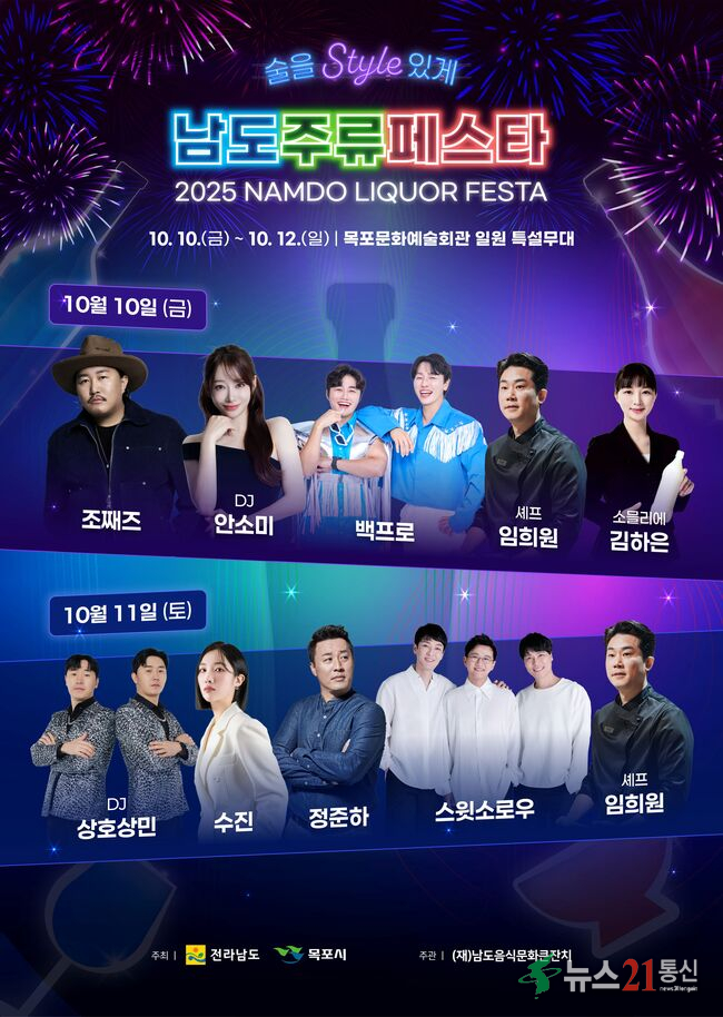 [뉴스21 통신=박철희 ] 전라남도가 오는 10일부터 12일까지 3일간 ‘2025 남도 주류페스타’를 개최한다.