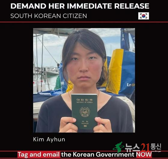 김씨는 지난 8일(현지 시각) 새벽, 구호물자를 싣고 가자지구로 향하던 ‘천 개의 매들린 함대’ 소속 선단에 탑승했다가 이스라엘군에 나포됐다. 그는 약 이틀간 구금된 뒤 10일 자진 추방 형태로 석방돼 현재 프랑스에 머물고 있다.