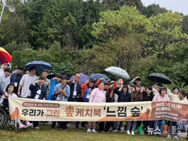 충남남부장애인종합복지관(관장 김태우)은 10월 13일, 피나클랜드에서 장애인 29명을 대상으로 숲 체험 교육지원사업 ‘우리가 그린(Green) 숲케치북’ 느낌 숲을 성황리에 마무리했다.