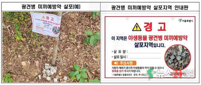 또한 서울시는 10월 13일부터 27일까지 서울 외곽 산지와 하천, 너구리 출몰 지역 등 약 145km 구간에 4만개의 광견병 미끼예방약을 살포한다. 이 약은 야생동물이 섭취하면 잇몸을 통해 백신이 흡수돼 면역이 형성된다. 시는 2006년부터 매년 봄·가을 미끼예방약을 살포해왔으며, 현재까지 서울에서 야생동물로 인한 광견병 발생 사례는 없다.