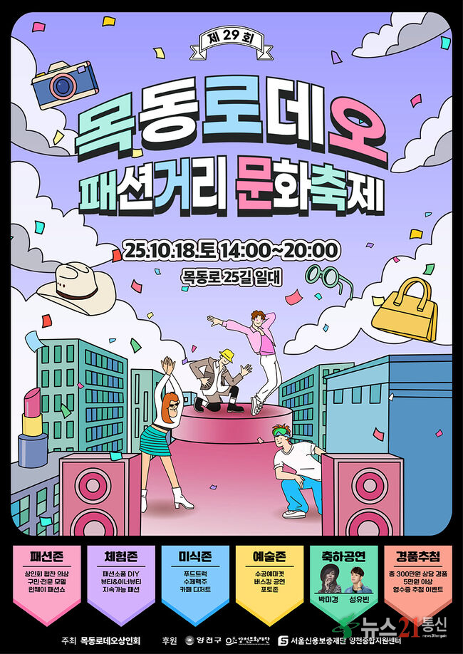 양천구민 모델과 전문 모델이 함께 무대에 올라 패션 트렌드를 선보일 예정이며, 유가영·성유빈·박미경 등 초청 가수 공연도 이어져 흥겨운 분위기를 더한다.