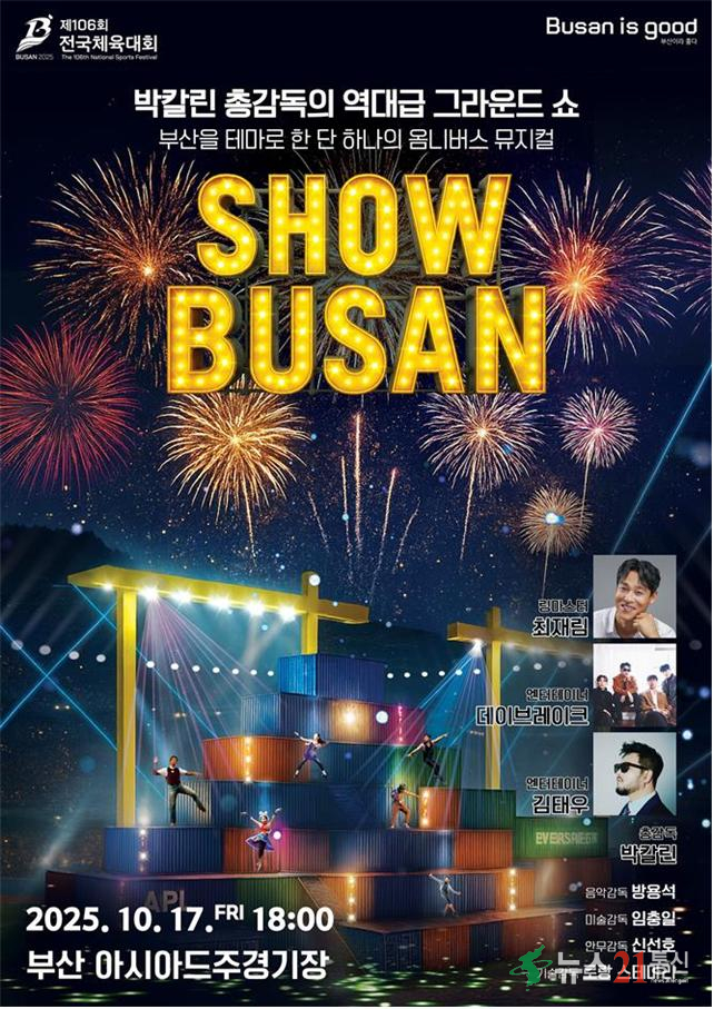 뮤지컬계 거장 박칼린 총감독과 태양의 서커스 기술감독 출신 로랑 스테마리 등 국내외 최고 예술진이 협업해, ‘배 들어온다, 부산!’이라는 주제 아래 부산의 바다와 도시의 역동성을 예술로 승화한 무대를 선보일 예정이다. 특히 아시아드주경기장 그라운드는 부산항 컨테이너 터미널로 변모해, 관람객들에게 생생한 항만의 에너지와 몰입감을 전한다.