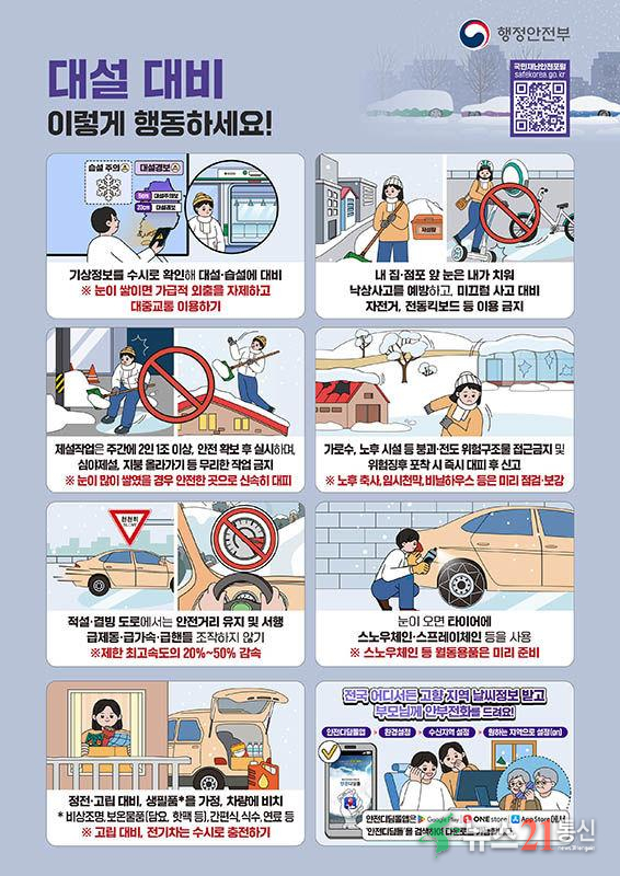 시 관계자는 “대설과 한파는 사전 대비로 피해를 최소화할 수 있는 재난”이라며 “시민 모두가 행동요령을 숙지하고 실천하는 것이 가장 효과적인 예방책”이라고 말했다.