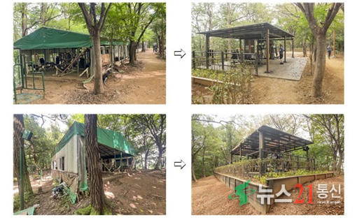 사진=양천구, 지양산 내 불법시설물 개선 전과 후