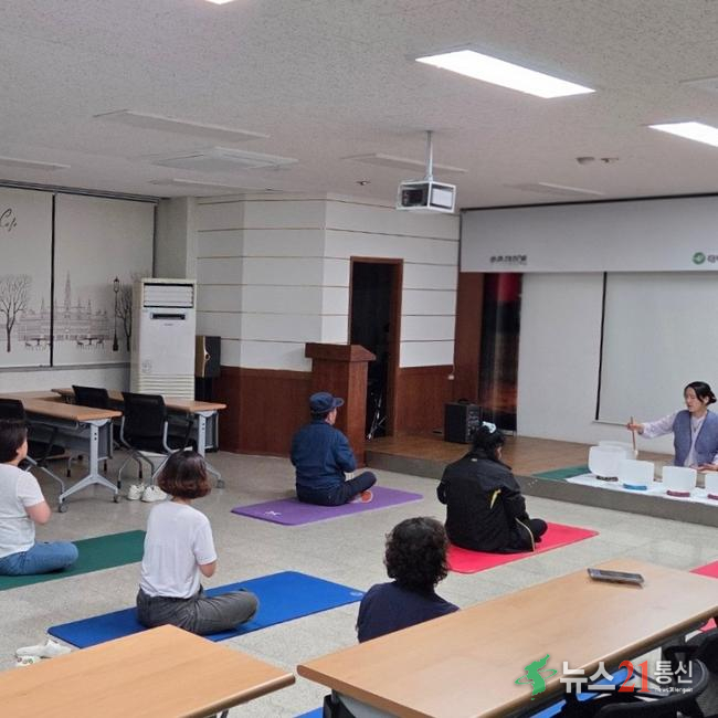 이어진 힐링 프로그램에서는 ‘양말목 방석 만들기’ 공예 활동을 통해 집중력과 성취감을 높이고, 따뜻한 분위기 속에서 교류의 시간을 가졌다.