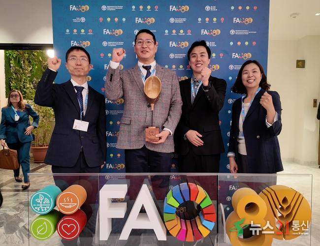 15일(현지 시각) 이탈리아 로마에서 열린 유엔식량농업기구(FAO) 80주년 기념행사에서는 △산불로부터 산림복원(대한민국 산림청) △요르단의 협력적 방목지 복원(요르단 환경부) △남반구 대나무 복원(국제대나무?등나무 기구 외 9개 국가) △복원 이니셔티브(IUCN 등 3개 기구, 9개 국가) 등이 4개의 우수사례에 대해 시상했다.