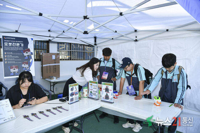 16일 열린 행사장에는 지역 기업·대학·공공기관 등이 참여해 100여개의 진로체험 부스가 운영돼 △직업체험존 △진로상담존 △창의융합존 △이벤트존 등에서 학생들이 직접 보고, 듣고, 체험하며 진로의 방향을 탐색할 수 있었다. 특히 인공지능과 로봇공학, 스마트 모빌리티 등 미래산업 분야 부스가 큰 인기를 끌며 청소년들의 높은 관심과 참여 열기를 보여줬다.