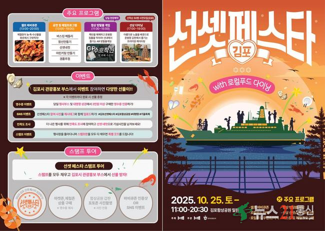 김포시 관계자는 “김포 선셋 페스타는 군함 위 석양을 배경으로 로컬푸드와 문화 콘텐츠가 어우러진 특별한 축제”라며 “시민과 관광객 모두가 안전하고 쾌적한 환경에서 잊지 못할 추억을 만들 수 있도록 최선을 다하겠다”고 말했다.