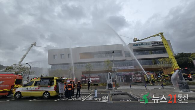 현장훈련은 소방, 경찰 군의 합동 수색, 구조와 응급의료소 설치, 병원이송 연계, KT의 통신 복구 지원, 전기, 가스안전공사의 2차 사고 차단 조치, 자율방재단과 여성예비군의 인명대피지원, 적십자, CPR의용소방대의 응급처치로 이어지며 골든타임 확보 능력을 집중 점검했다.