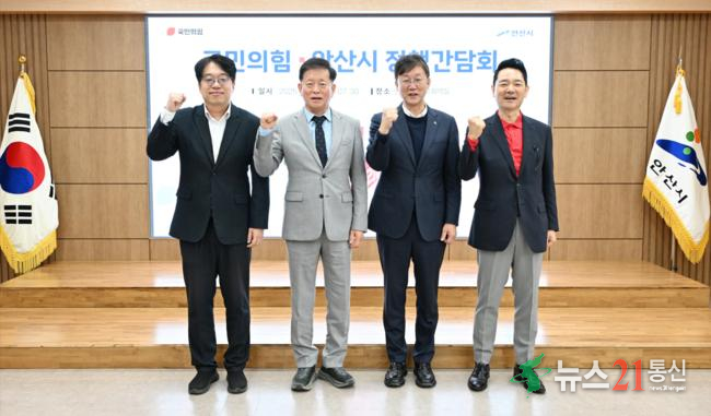 이민근 안산시장[사진=안산시]안산시(시장 이민근)는 지난 21일 시청 제1회의실에서 국민의힘 당협위원장과 정책간담회를 개최하고 시정 주요 현안과 협력 방안에 대한 다양한 의견을 논의했다고 22일 밝혔다.