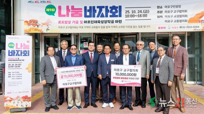 박강수 마포구청장은 10월 24일 오전, 마포구민광장에서 열린 ‘제9회 사랑과 희망의 나눔바자회’에 참석해 지역 교회와 주민들이 함께한 따뜻한 나눔의 현장을 격려했다.이번 행사는 **마포구 교구협의회(회장 김양태 목사, 신덕교회)**가 주관하고 마포구가 후원했으며, 교회들이 힘을 모아 소외계층을 위한 복지기금을 마련하고 지...