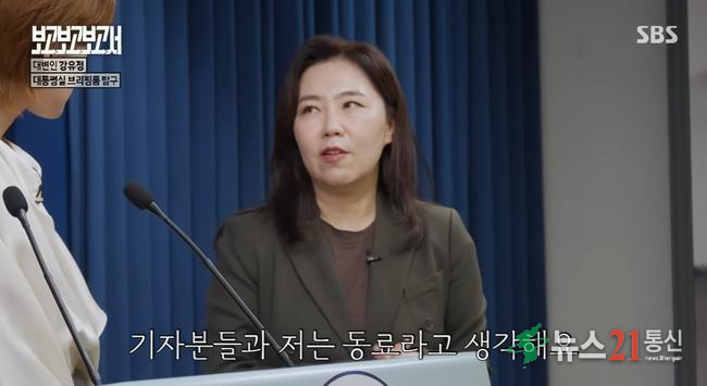 강유정 대통령실 공동대변인은 23일 방송된 SBS 토크쇼 ‘별의별 토크: 보고보고보고서’에서 대통령과 참모진의 일상적 소통과 업무 방식을 소개했다.