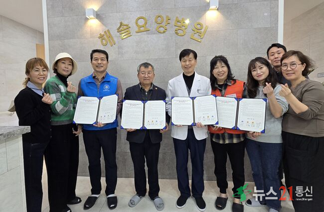 [뉴스21 통신=최세영 ]▲ 사진제공=해솔요양병원지난 15일 오전, 울산광역시 북구 당수골5길 41-6 해솔요양병원 대회의실에서 어르신 돌봄 현장에 전문기술을 접목한 재능나눔 업무협약식이 열렸다. 이날 협약에는 울산숙련기술인협회(회장 손덕화), 사)한국전기기능장협회 울산광역시회(사무국장 차승환), 헤어디자인봉사단(회장 김설옥), 월...
