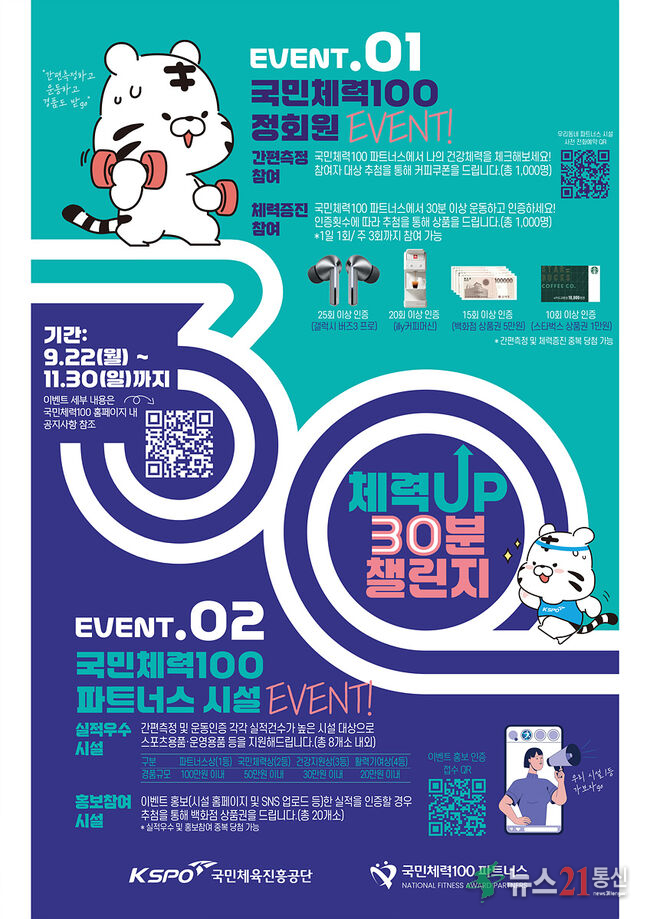 11월 30일까지 ‘체력업(up) 30분 챌린지’ 이벤트도 진행된다.