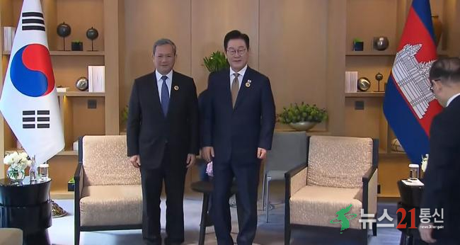 한-아세안(ASEAN·동남아시아국가연합) 정상회의 참석을 위해 말레이시아를 방문 중인 이재명 대통령은 27일(현지시간) 쿠알라룸푸르에서 훈 마네트 캄보디아 총리와 정상회담을 갖고, 최근 한국인을 겨냥한 스캠(사기) 범죄 대응과 양국 협력 방안을 논의했다.