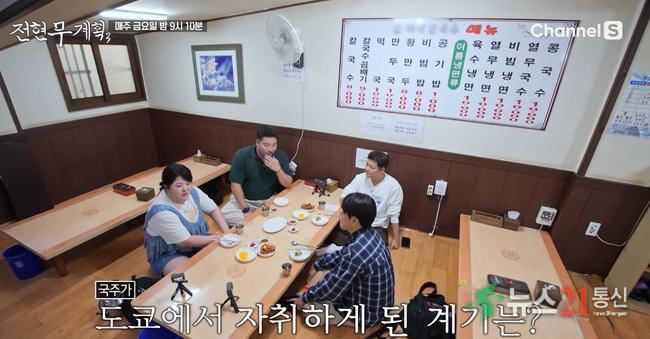 개그우먼 이국주가 일본 도쿄 생활 중 자연스럽게 살이 빠진 비결을 공개했다.지난 24일 방송된 MBN·채널S 예능 프로그램 '전현무계획3' 2회에서는 전현무, 곽튜브(곽준빈), 이국주, 전 농구선수 박광재가 전북 익산의 맛집을 찾는 모습이 그려졌다.45년 전통의 칼국수집에서 ‘일보다 먹는 얘기’로 웃음을 나누던 네 사람은 ..