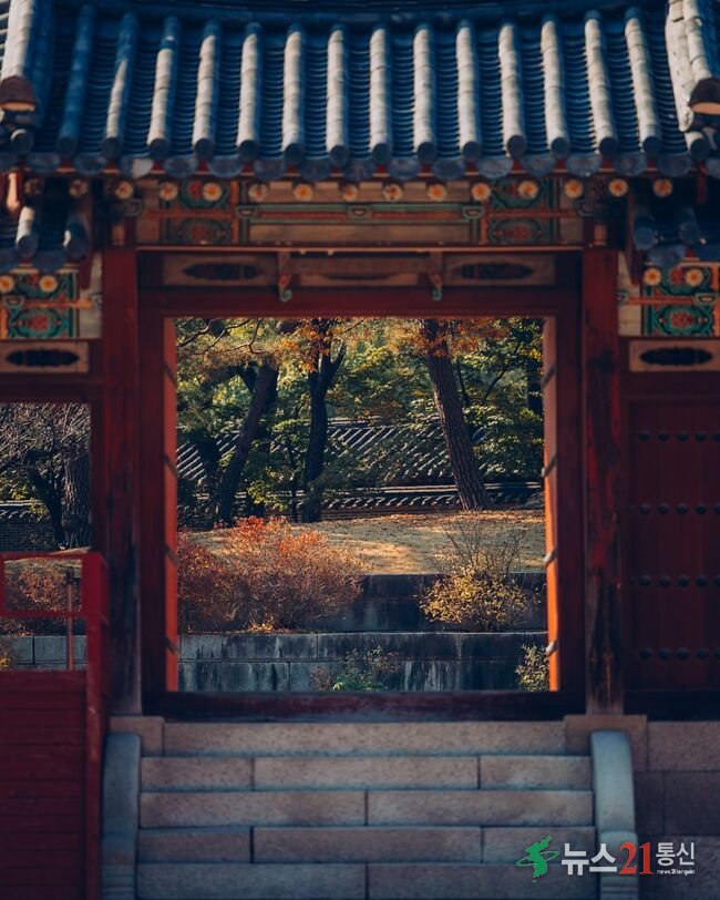 고궁을 간다면 문과 복도 등 네모난 형태의 프레임을 쉽게 마주할 수 있다. 이런 공간에서는 대칭을 맞춰 안정적이면서 시선이 중앙으로 모인다.