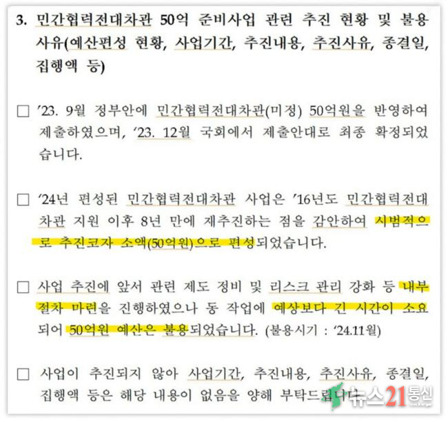 이 50억 원은 쓰이지 못했다. "제도 정비와 리스크 관리 강화 등 내부 절차 마련에 예상보다 긴 시간이 소요됐다"는 게 수은이 새로 밝혀온 불용 처리의 이유입니다. 2024년 11월의 일이다.