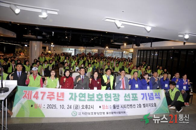 2025년 10월 24일(금요일) 오후 1시부터 3시까지 울산시티컨벤션 2층 벨라지오홀에서 ‘제47주년 자연보호 헌장선포 기념식’이 성대하게 개최되었다. 이번 행사는 자연보호중앙연맹 울산광역시협의회(회장 허무선)가 주관하고, 울산광역시 및 관계 기관이 함께하여 자연사랑과 환경보전의 중요성을 되새기는 뜻깊은 자리로 마련되었다.