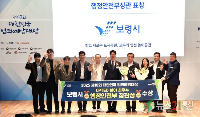 충남 보령시가 경찰청과 중앙일보가 공동 주최한 ‘제10회 대한민국 범죄예방대상’에서 셉테드(CPTED, 범죄예방환경설계) 분야 최우수 행정안전부 장관상을 수상했다. 이번 수상은 노후 도심공원의 범죄 취약 환경을 개선하고, 시민이 범죄로부터 안전하게 생활할 수 있는 도시환경을 조성한 점에서 높은 평가를 받았다.