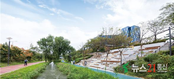최근 조성이 완료된 ‘장지천 수변감성공원’에 가면 완연한 가을의 정취를 느낄 수 있다. 가든파이브 뒤편 장지천을 따라 1만 7천㎡ 규모로 수변 감성이 흐르는 힐링 공간으로 꾸몄다. 피크닉 즐기기 좋은 잔디마당과 수변을 조망하는 전망데크, 데크평상과 철제쉘터 등을 설치해 도심 속 주민들이 자연의 변화와 아름다움을 만나고, 쉼을 느낄 수 있는 곳으로 재탄생했다.