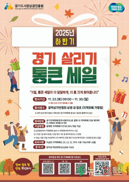 양주시 광적상가번영회가 오는 22일부터 30일까지 경기 침체와 고물가로 어려움을 겪는 소상공인들을 지원하기 위해 ‘2025년 하반기 경기 살리기 통큰 세일’을 진행한다.