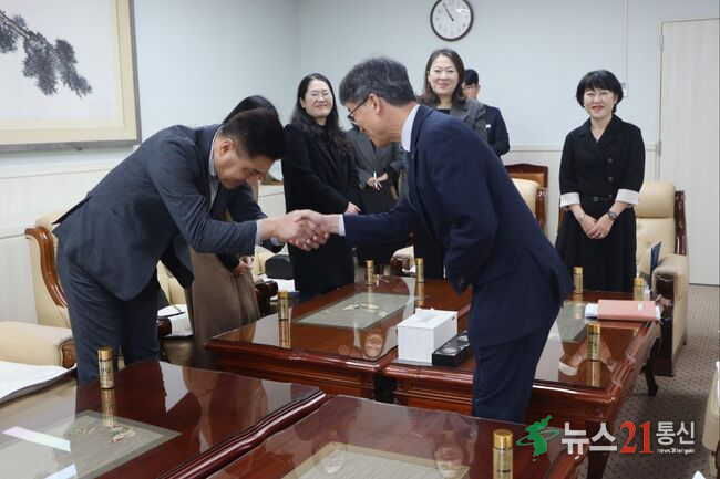 [뉴스21 통신=최병호 ]*사진출처-울산교육청2025년 11월 4일(화요일), 중구마을교육협의회 최병호 회장과 임원진은 울산광역시교육청을 방문하여 천창수 교육감과의 소통 간담회를 가졌다. 이번 간담회는 지역사회와 교육청이 협력하여 마을교육의 발전 방향을 모색하고, 청소년이 행복한 교육환경을 조성하기 위한 뜻깊은 자리로 마련되었다...