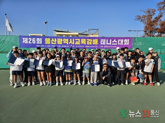 [뉴스21 통신=최세영 ]▲ 사진제공=울산광역시교육청울산광역시교육청(교육감 천창수)이 주최하고 울산광역시테니스협회(회장 오효선)가 주관한 ‘제26회 울산광역시교육감배 테니스대회’가 지난 8일과 9일 이틀간 울산 문수테니스장에서 열렸다. 대회는 초등 10세부(남, 여), 초등 12세부(남, 여), 중학부(남, 여), 고등부(남, 여) ...