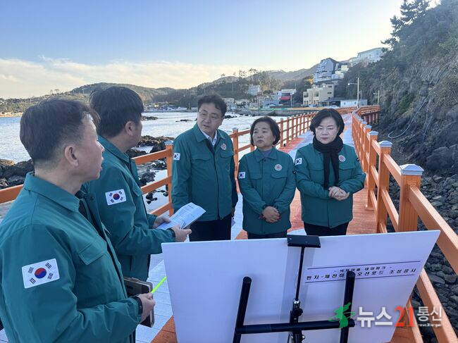 의원들은 판지항 광장과 쉼터, 산책데크 미끄럼방지 포장 및 옹벽부 개선 현장을 둘러보고, 경관조명과 색채를 입힌 파제벽 및 벽화를 직접 확인했다.