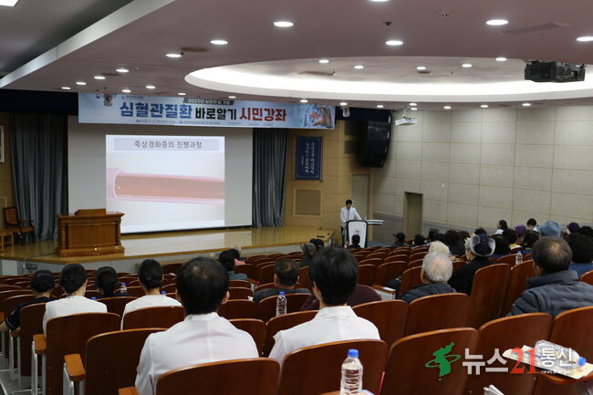 이번 강좌는 심근경색 등 주요 심장질환에 대한 정확한 이해와 필요성을 알리기 위해 마련되었으며, 순환기내과 조성호 교수가 심근경색과 협심증의 위험요인, 증상, 예방법 등을 강연하였다.