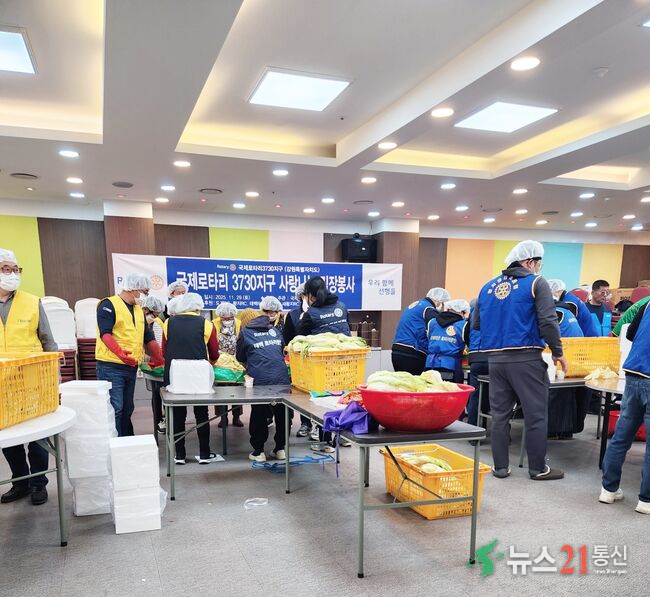 이번 김치는 국제로타리3730지구 사랑나눔 김장봉사 활동의 일환으로, 로타리클럽 회원들이 직접 김치를 담그고 포장해 마련한 것이다.