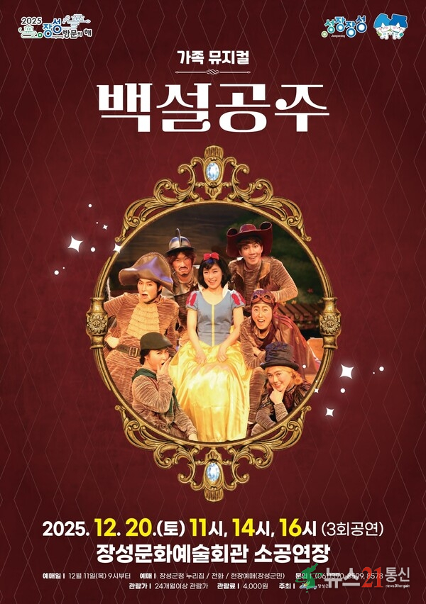 이어 20일에는 가족 뮤지컬 ‘백설공주’가 무대에 오른다. 고전 동화를 재해석한 어린이 뮤지컬로 아름다운 음악과 화려한 연출이 돋보이며, 11시, 14시, 16시 총 3회 공연한다. 예매는 11일 오전 9시 온라인, 저녁 6시 현장 판매가 진행된다.