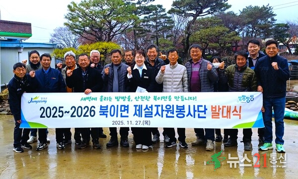 북이면 제설자원봉사단에는 트랙터 등 장비를 보유한 주민 29명이 참여하며, 눈이 내릴 경우 26개 마을 진입로와 이면도로 등 63.3km 구간에서 제설 작업을 수행하게 된다.