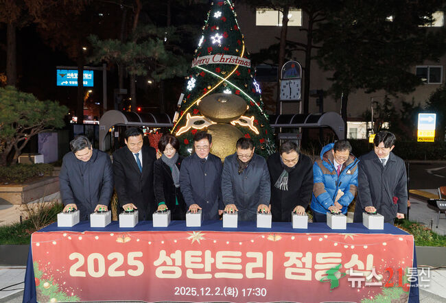 진교훈 구청장은 “추위 속에 불을 밝혀 트리 점등식이 더 따뜻하고 환하게 빛나는 것 같다”며, “성탄트리의 따뜻한 불빛이 구민들의 안녕과 평화를 위한 희망의 메시지가 되길 바란다”고 말했다.
