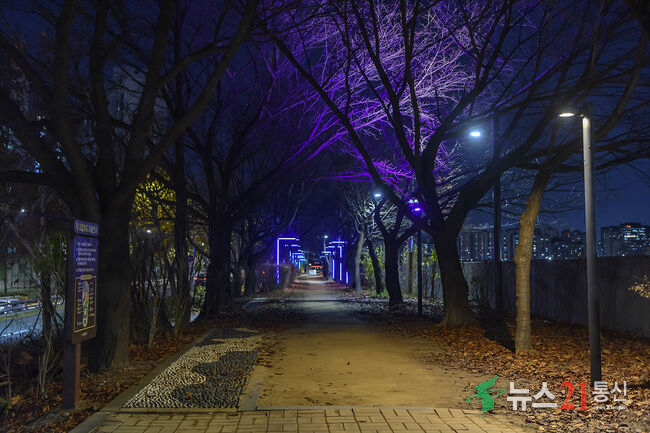 양천구(구청장 이기재)는 신정교에서 오금교에 이르는 약 500m 구간의 안양천 제방 산책로에 다양한 경관조명을 설치해 안전하고 매력적인 장소로 재탄생시켰다고 4일 밝혔다.