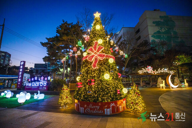올해 트리는 ‘사랑·희망·따뜻한 나눔’을 주제로 설치됐으며, 트리존, 포토존, 조명존이 함께 조성돼 도심 속 낭만적 겨울 야경을 제공한다.
