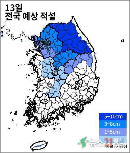 [뉴스21 통신=추현욱 ] 이번 주말 수도권 등 중부내륙에 많은 눈이 내릴 전망이다.11일 기상청에 따르면 우리나라 북서쪽에 자리해 동해 쪽으로 세력을 확장하는 고기압 가장자리를 타고 동풍이 불면서 이날 오후부터 강원동해안·산지와 경북동해안·북동산지에 비나 눈이 내리겠다. 찬 동풍이 상대적으로 따뜻한 동해 위를 지나면..